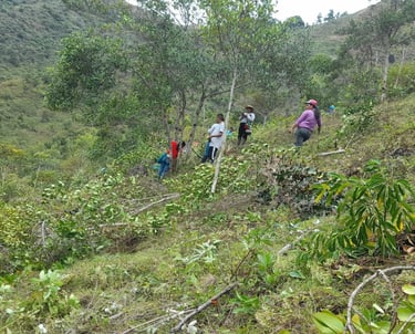 Todas estas actividades se ejecutan en comunidad, a través de mingas de trabajo, en las cuales se involucran y participan todos los asociados: hombres, mujeres, adultos y jóvenes, para el mejoramiento de los sistemas productivos y comerciales. Además, se hacen los almuerzos comunitarios para todos los participantes. Realizamos actividades pecuarias en ganadería y piscicultura y agrícolas con cultivos como el plátano, yuca, maíz, aguacate, entre otros.